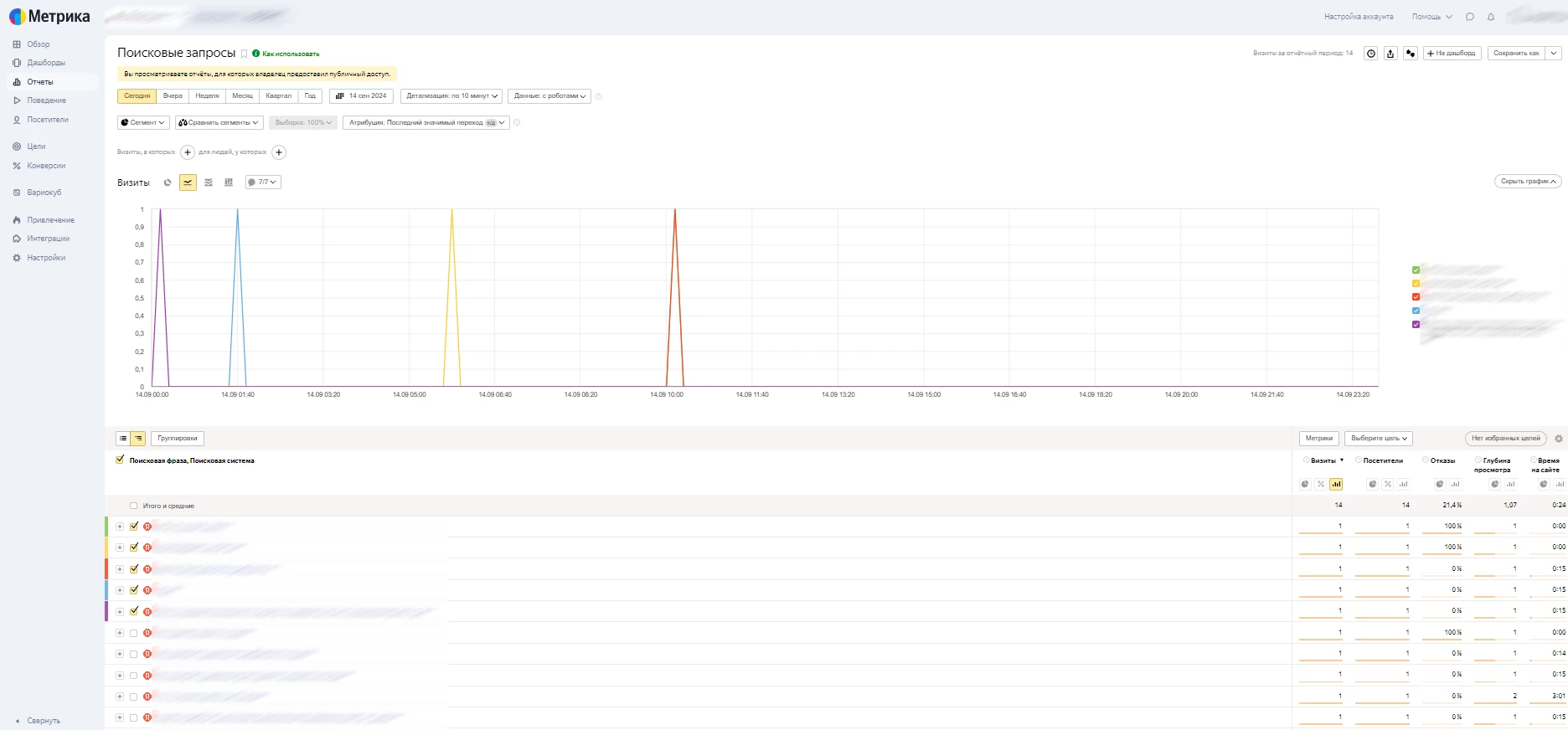 Имеет смысл изучить, какие ключевые запросы приводят трафик. Для этого изучите отчёт «Метрики» — «Поисковые запросы».