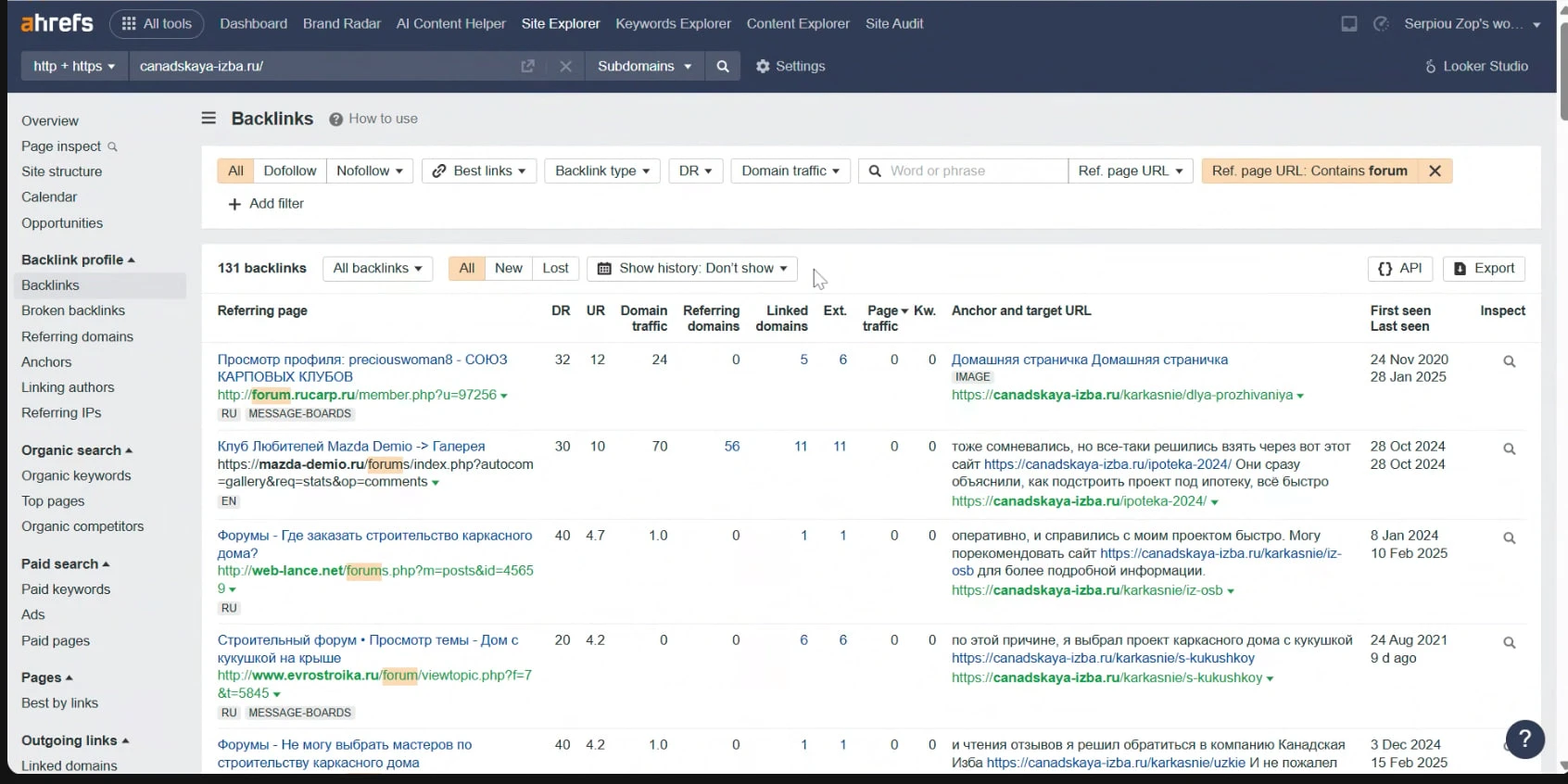 По данным Ahrefs, количество форумных ссылок — 131 ссылка из 1800 (примерно 7%):