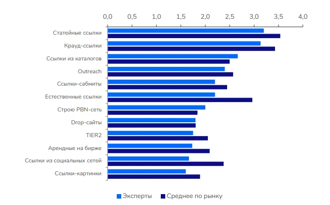 Также по данным исследований Sape, SEO-специалисты считают крауд-ссылки, ссылки из каталогов и соцсетей эффективными инструментами в стратегиях линкбилдинга:
