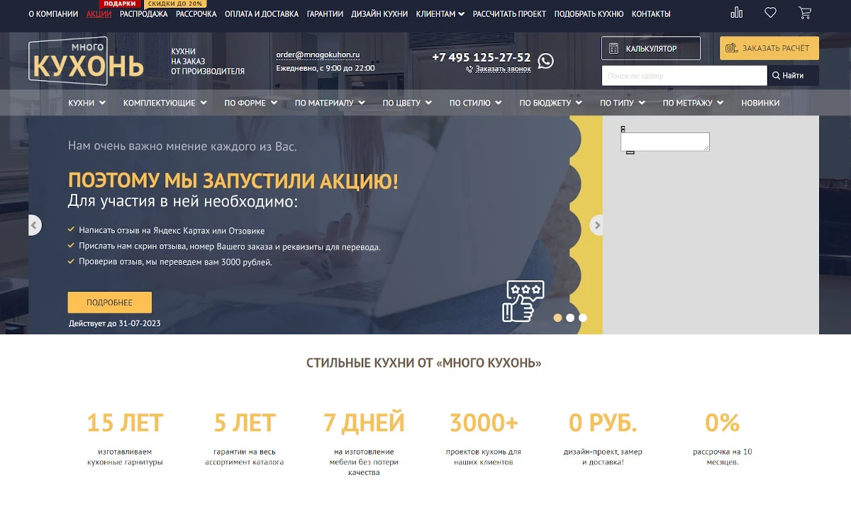 Мы привлекали клиентов на страницу компании — производителя кухонь в том числе с помощью SEO-оптимизации страниц. Семантическое ядро постоянно корректируем в зависимости от сезонности, что позволяет держать сайт в топ-5 поисковой выдачи.