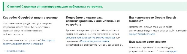 ВАЖНО: используя сервис PageSpeed Insights, также можно проверить удобство просмотра страницы на мобильных устройствах. Этот сервис выгружает содержимое страницы, имитируя просмотр пользователем, но не учитывает в своей работе директивы файла robots.txt, тогда как Mobile-Friendly Test следует правилам robots.txt. Соответственно, результаты проверки в этих двух сервисах могут сильно отличаться, и успешное прохождение теста в сервисе PageSpeed Insights не является показателем дружественности страницы для мобильных устройств.