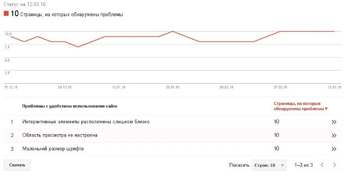 В Search Console в разделе «Удобство просмотра на мобильных устройствах» можно ознакомиться с информацией о найденных поисковой системой Google недочетах в отображении страниц сайта на мобильных устройствах: