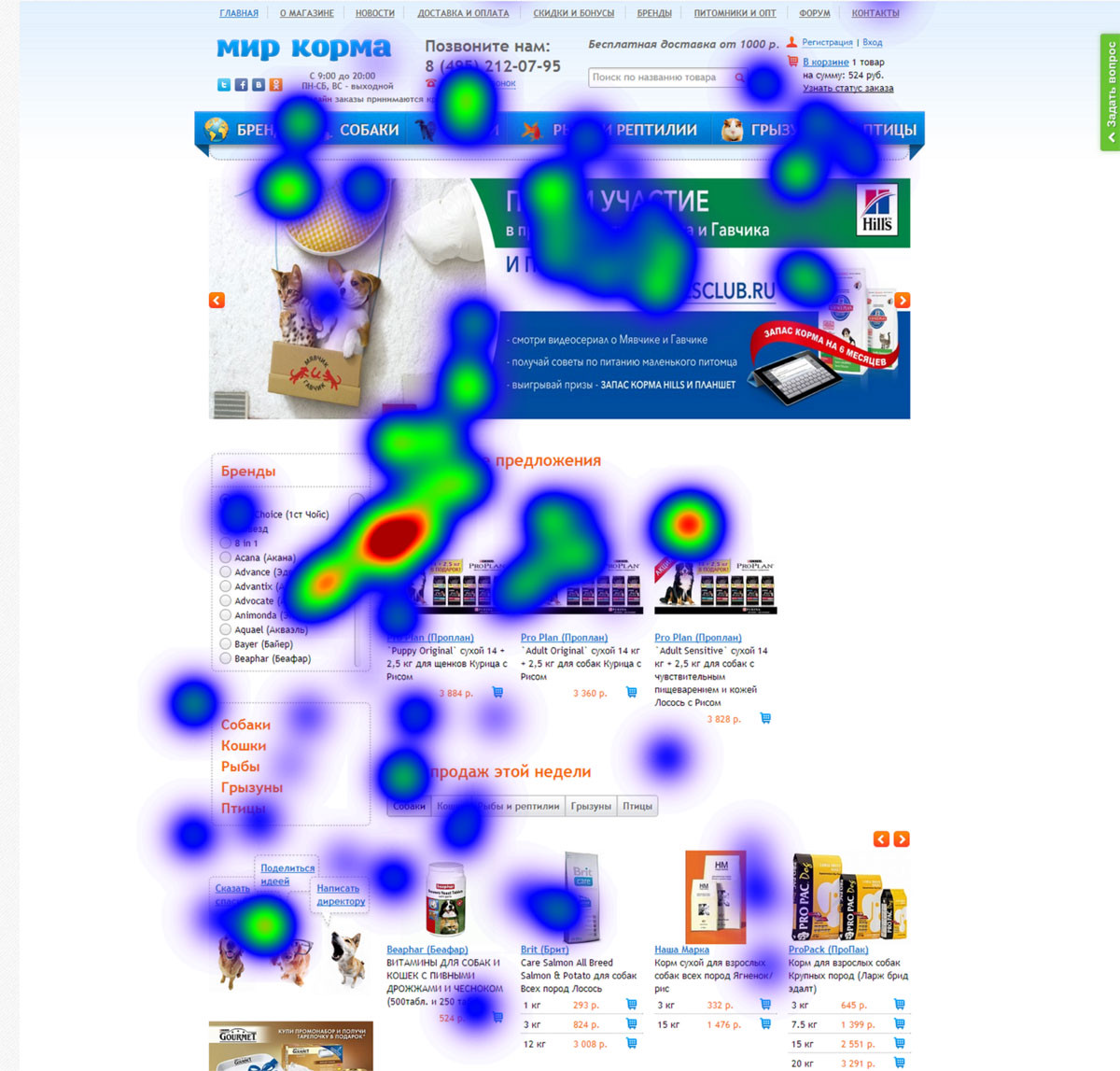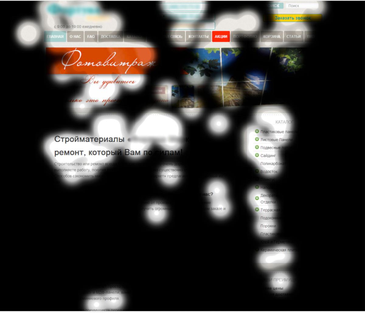 К примеру, в интернет-магазине было два УТП: бесплатная доставка и ряд спецпредложений. Первый блок расположили в верхней части сайта, второй — в середине. После проведенного исследования с помощью айтрекера была получена следующая картина.