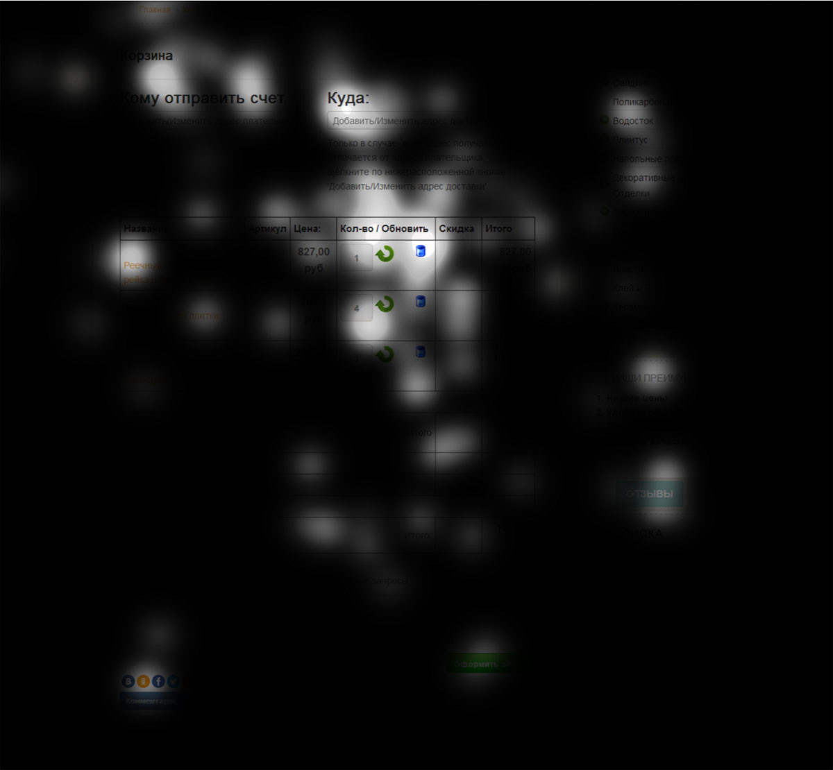 Последней причиной низкой конверсии стала неудобная корзина. Для конкретизации недостатков также было проведено айтрекинг-тестирование. Его результаты представлены на следующем рисунке.