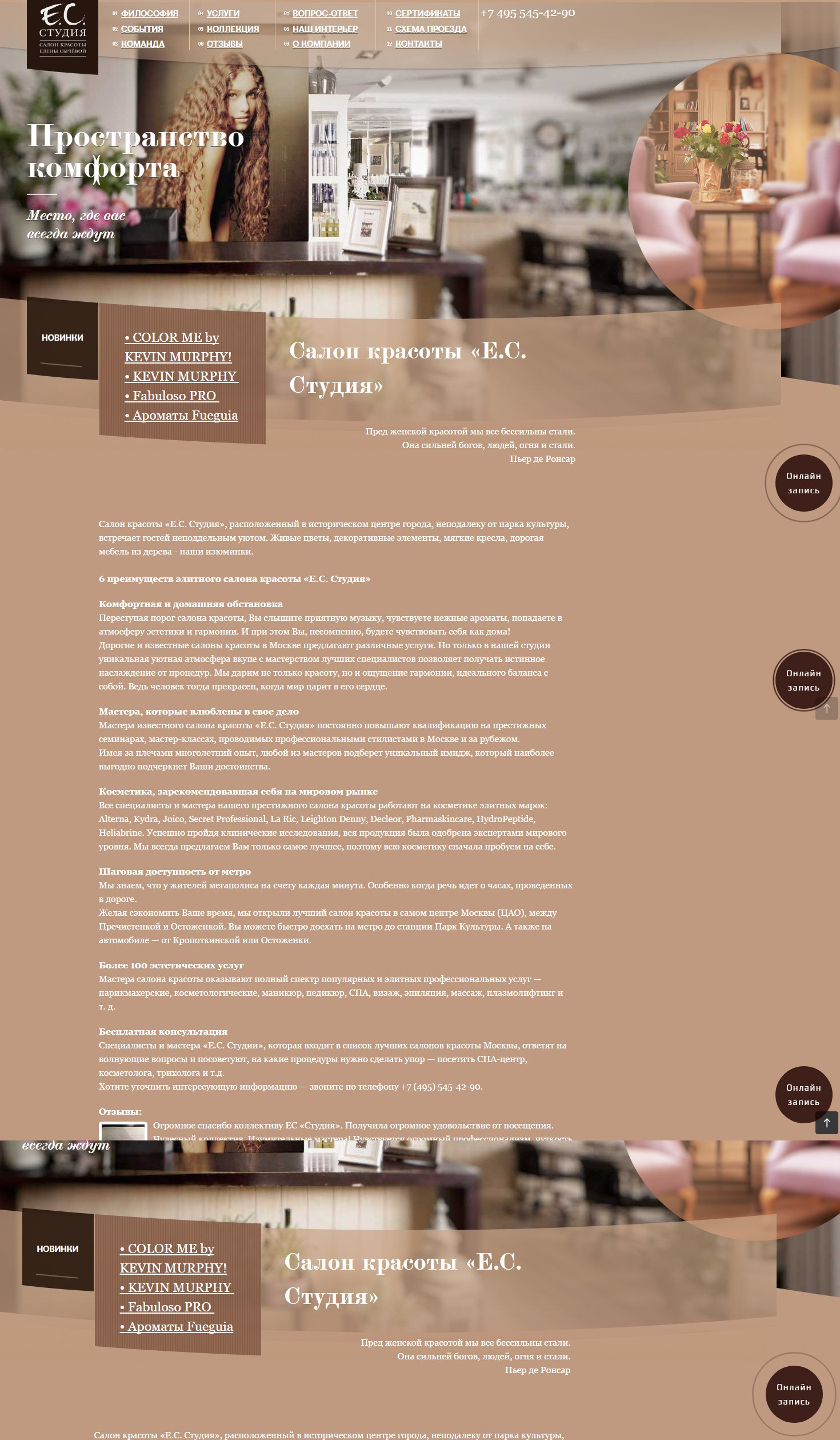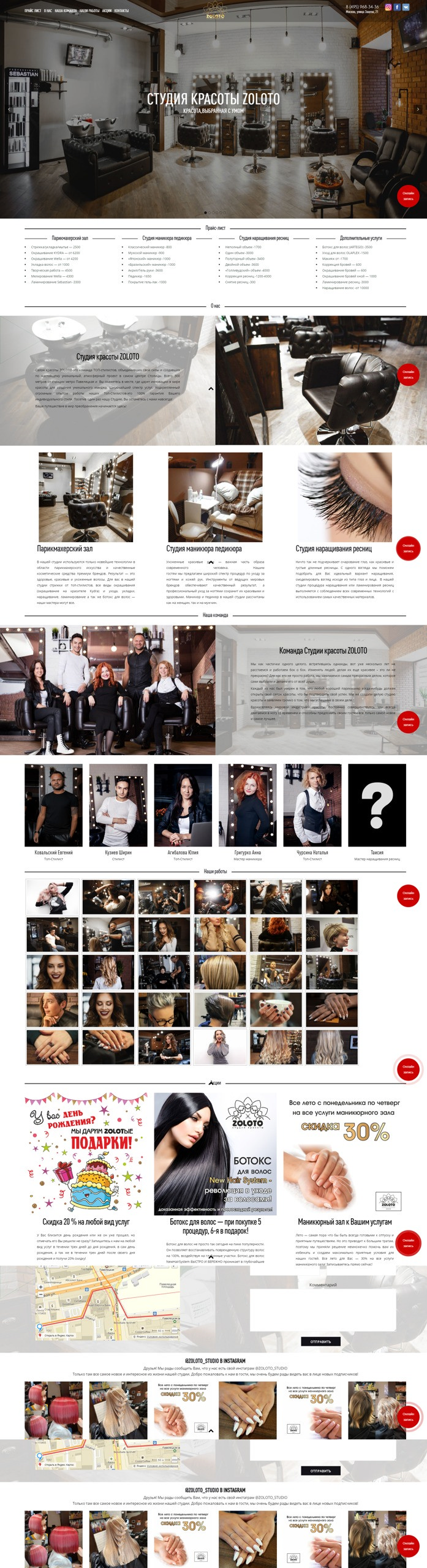 Ниже приведены примеры дизайна главных страниц салонов красоты. Информативным первый вариант назвать сложно. Перейдя на этот ресурс по запросу «салон красоты», пользователь, скорее всего, покинет его через 1 секунду, потому что здесь нет ответа ни на один из вышеперечисленных вопросов. На втором сайте есть понятная навигация, выведены прайс-лист и список основных услуг, представлены специалисты, которые будут работать с клиентом, примеры работ и актуальные акции. Человек, желающий воспользоваться услугой, наверняка задержится здесь, чтобы ознакомиться со всей информацией.