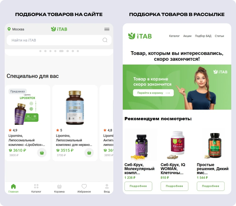 Товарные подборки могут отображаться на сайте, в приложении или в письмах email-рассылки