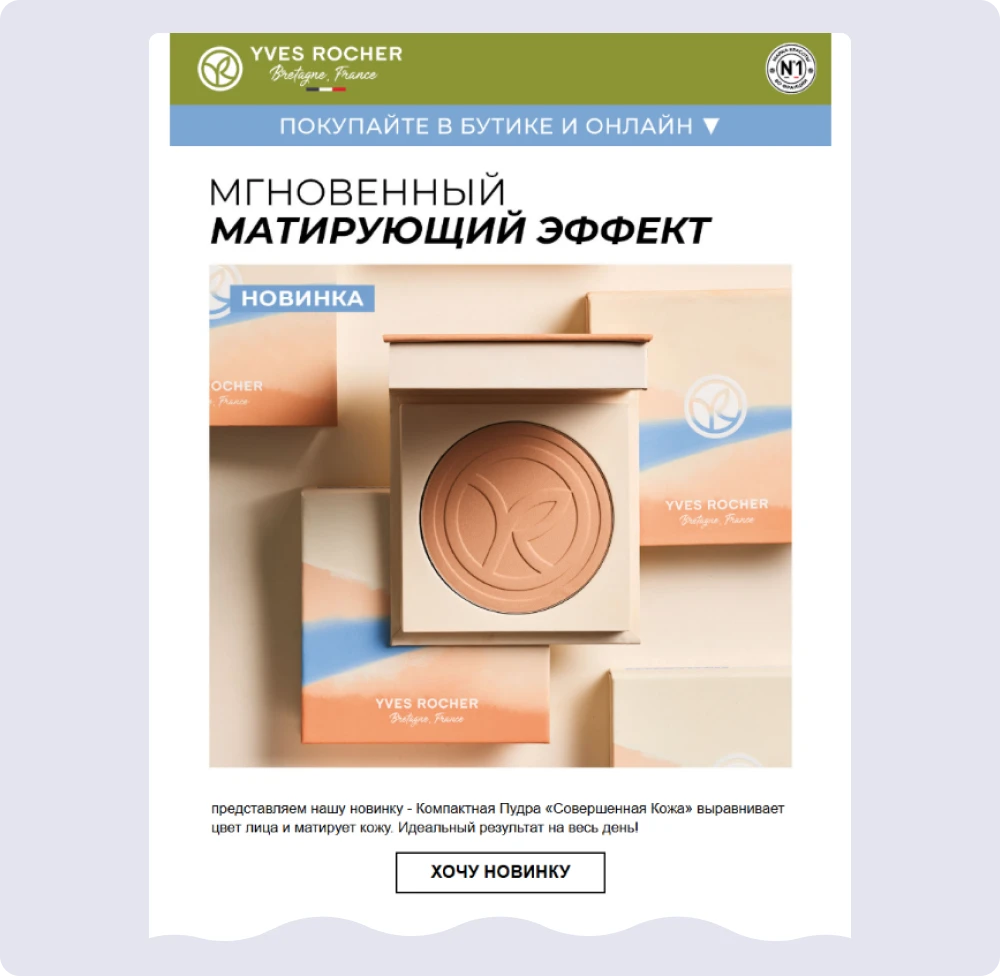 В рассылках с новинками можно показывать и целые подборки, и отдельные товары. Главное, чтобы они попадали в интересы клиента — тогда письмо сработает