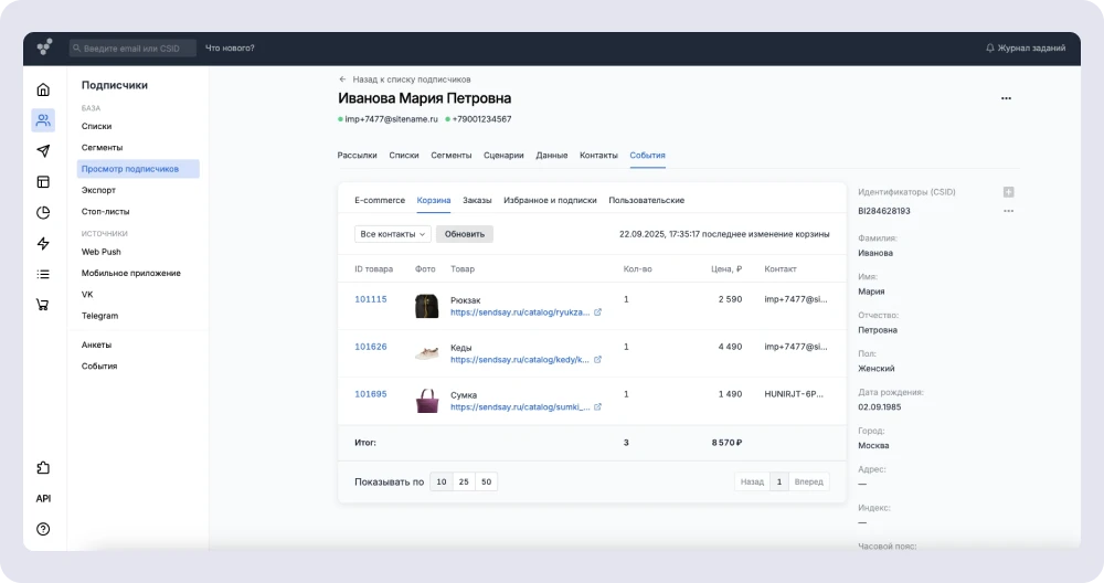 Ниже — что нужно для отправки рекомендаций через маркетинговую платформу на примере CDP Sendsay.