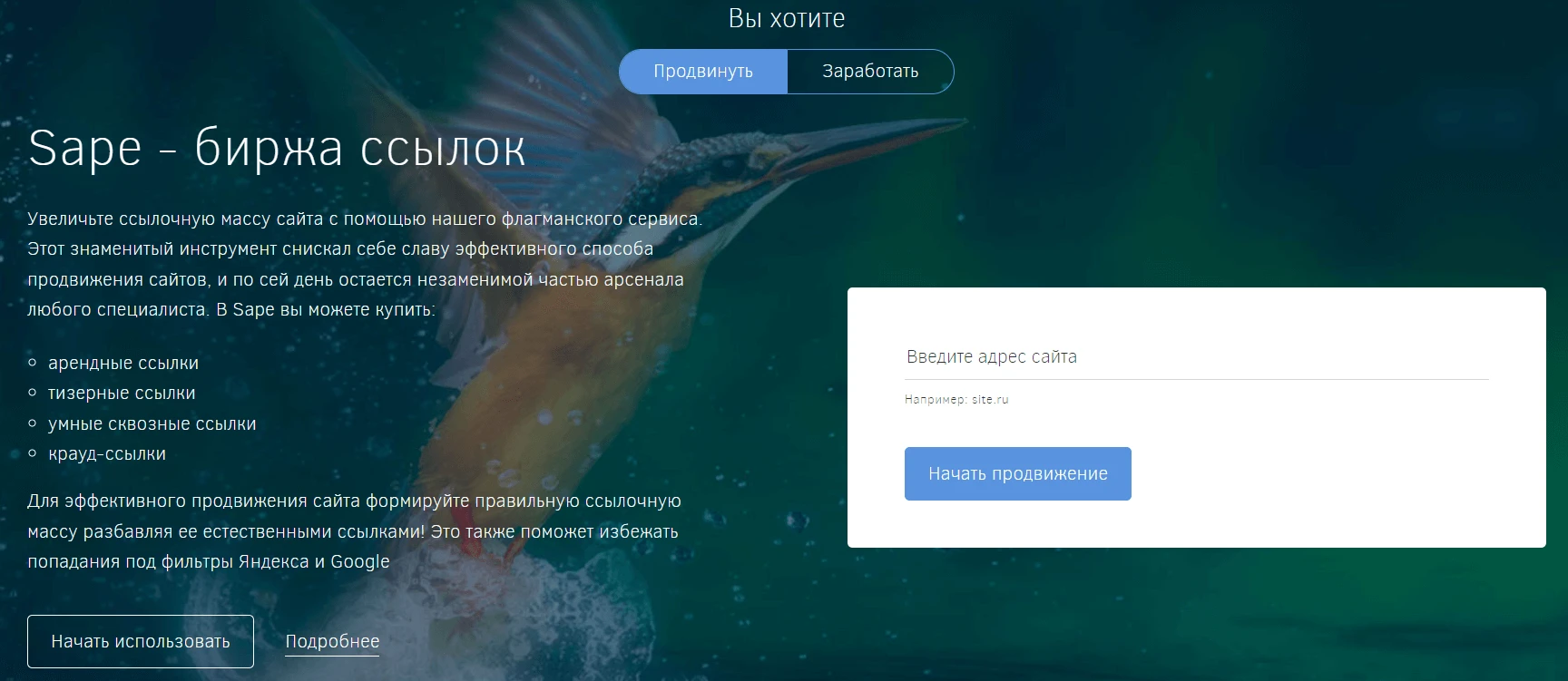 Добавлять больше нетекстовых элементов при обновлении. Старайтесь заменять часть длинных текстов другими элементами: таблицами, инфографиками, схемами, иллюстрациями. Тут мы могли бы долго расписывать, что именно имеем в виду, но вместо этого приведем всего два примера: ниже скриншот главной страницы сайта sape.ru всего 5 лет назад и сегодня.