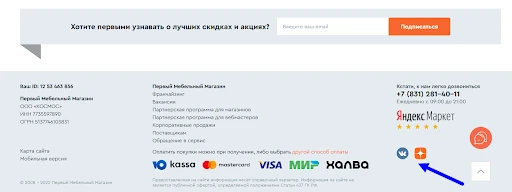 Кнопки соцсетей на сайте мебельного интернет-магазина
