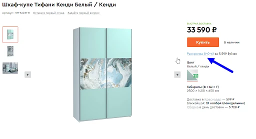 Предложение купить шкаф-купе в рассрочку от мебельного магазина