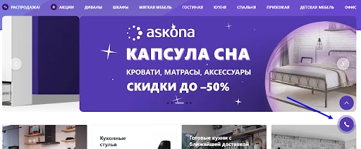 Виджет обратного звонка на сайте интернет-магазина мебели