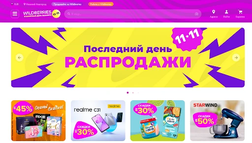Главная страница маркетплейса Wildberries — информация об акции в центре внимания
