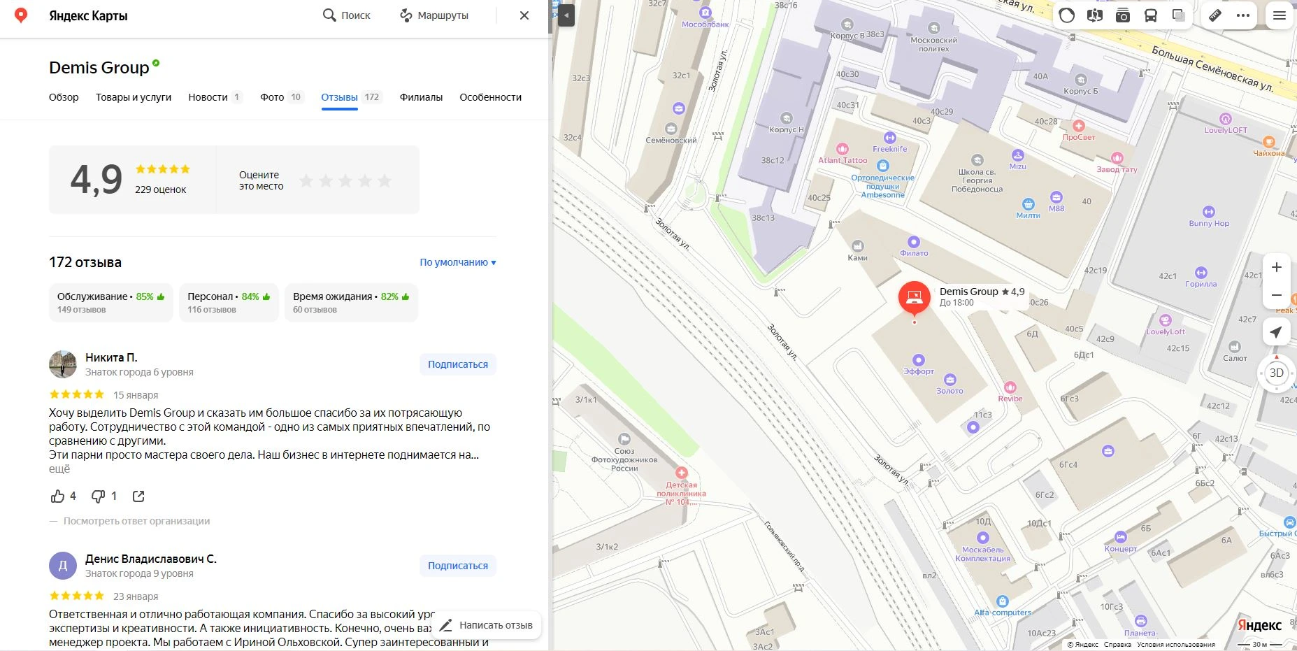 С Demis Group в качестве подрядчика для работы с репутацией вы увидите результаты уже через 6 месяцев: более 85% топ-10 поисковых выдач будут заняты положительными упоминаниями о вашем бренде, а рейтинг на сайтах с отзывами увеличится до 4,2 и выше.