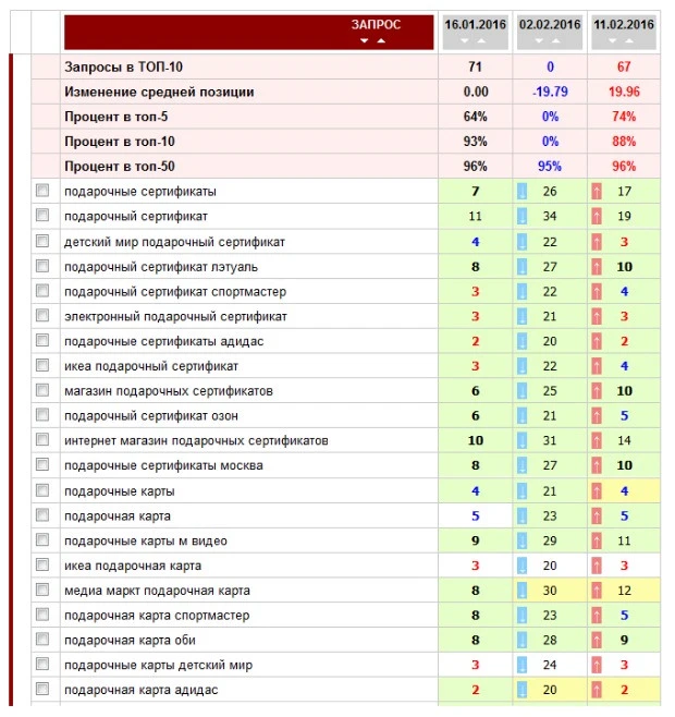 Пример 1. Фильтр Яндекса среагировал на действие сервиса CoMagic. Позиции упали, на их восстановление ушло несколько дней. С учетом того, что эти произошло в канун Дня влюбленных и незадолго до 23 февраля, Вы можете себе представить, сколько потенциальных переходов на сайт было упущено.