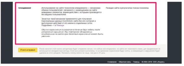 Все эти действия могут повлечь за собой санкции Яндекса за применение кликджекинга.