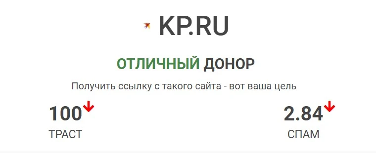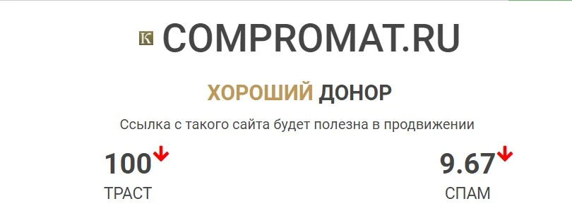 Вернемся к нашему примеру. Сайт “Компромат.Ру” имеет высокий траст, и его значительно тяжелее вытеснить, чем Politpskov.ru.