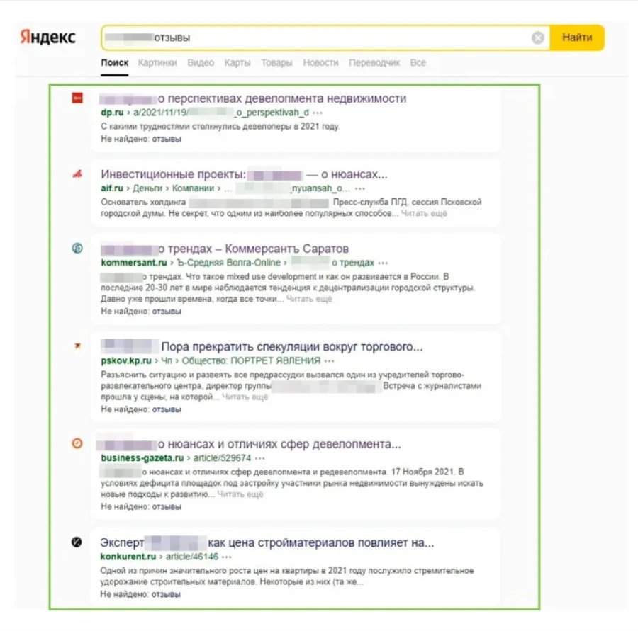 На этом этапе мы снова возвращаемся к списку запросов, подготовленному ранее. Материалы должны быть иметь соответствующий контекст. Если негативная статья — о владельце строительного бизнеса, то и новые публикации касаются строительной отрасли, бизнеса, инвестиций в недвижимость.
