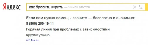 Психологическая помощь. Пожалуй, самый социально-ориентированный колдунщик Яндекса. Он показывает телефоны доверия, контакты различных организаций и другую необходимую в сложных жизненных ситуациях информацию.