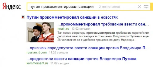 Новости. Данный колдунщик Яндекса подбирает свежие события, подходящие под запрос. Например, можно узнать о последних новостях, касающихся Владимира Путина или других личностей и событий.