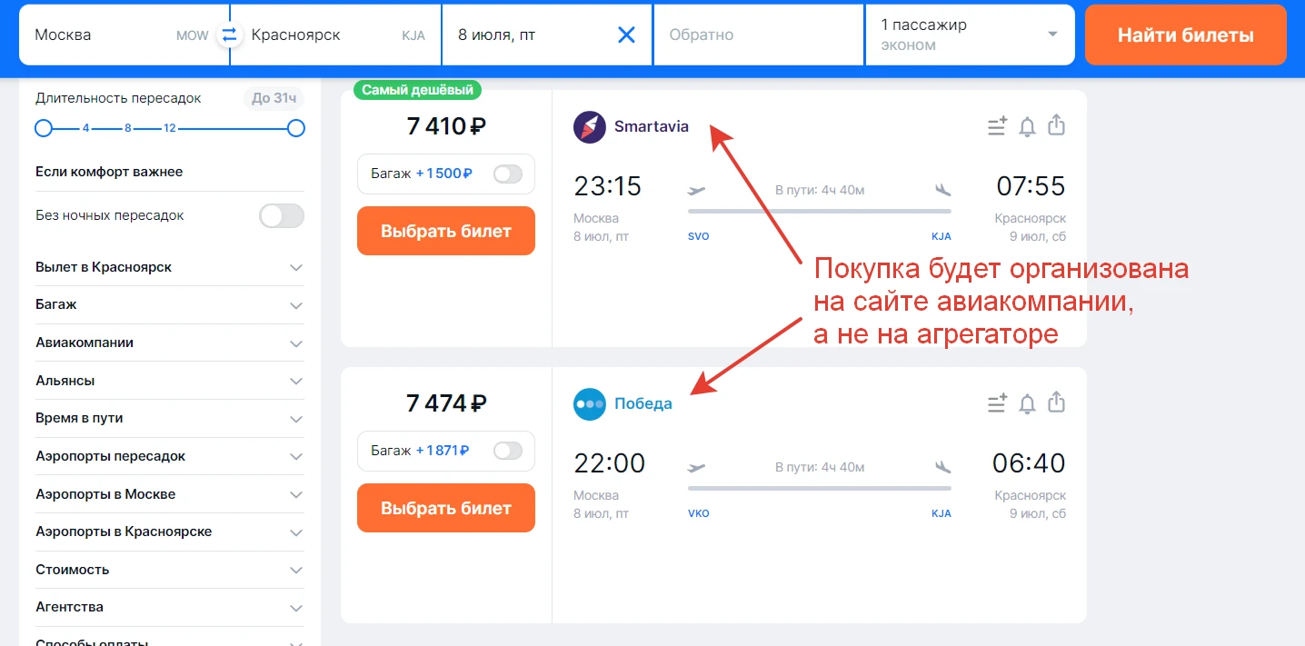 Агрегаторы наподобие Aviasales, Banki.ru тоже собирают у себя предложения других продавцов, как и маркетплейсы. Но агрегаторы не организуют процесс покупки, а просто берут плату за трафик. Например, если вы выбрали рейс на Aviasales, то для покупки билетов агрегатор направит вас на сайт соответствующей авиакомпании.