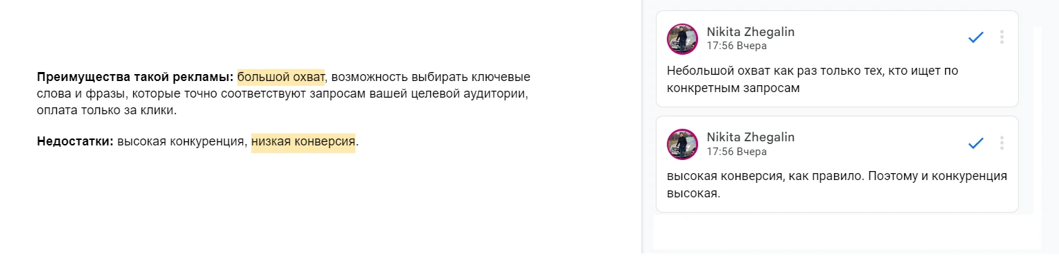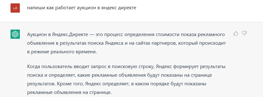 Тут я схитрила. Мне не понравилось, как он расписал про аукционную модель. И вместо того, чтобы попросить скорректировать текст, я в отдельном чате дала задание написать о том, как работает аукционная модель. Итоговый текст в этом разделе я сильно корректировала. По сути, ChatGPT выдал мне объемную статью про аукцион, на основе которой я быстро написала блок текста.