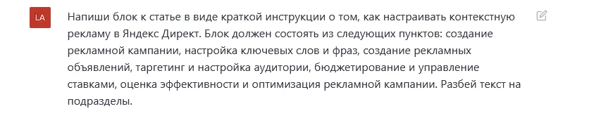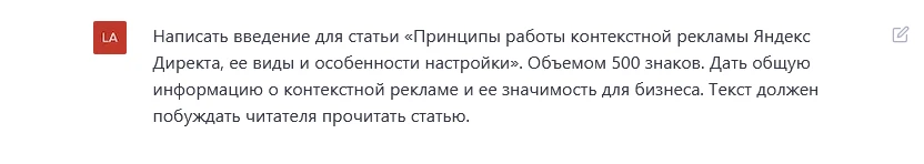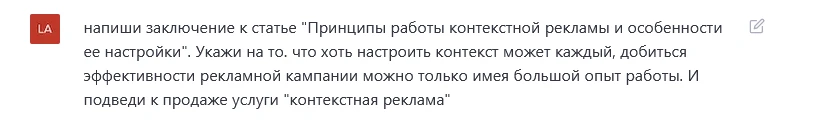 Итак, с чего же начинается написание статьи? Конечно, с идеи. Нашей с ChatGPT задачей будет написать статью с рабочим названием «Принципы работы контекстной рекламы и особенности ее настройки».