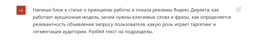 Задание для ChatGPT по написанию раздела «Принципы работы контекстной рекламы Яндекс.Директа»: