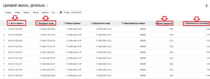 После подключения номера и настройки параметров «Целевого звонка» начинаем следить за статистикой и оптимизировать рекламные кампании.