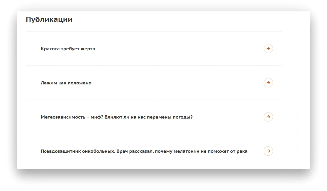 На странице врача медицинской клиники есть ссылки на его публикации в СМИ, это повышает авторитетность сайта