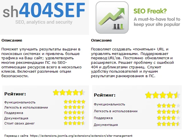Ознакомиться с полным списком возможностей этих расширений также можно на официальном сайте по ссылкам sh404SEF, JoomSEF.