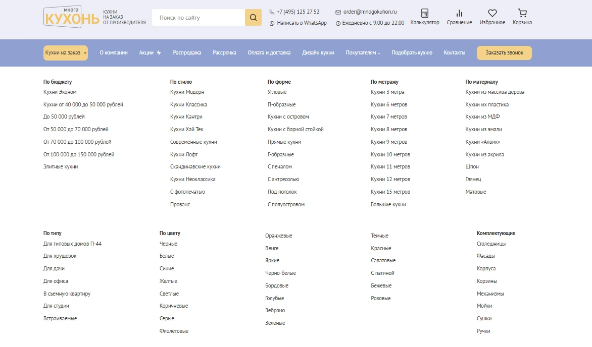 Пример навигации сайта нашего клиента — интернет-магазина «Много кухонь»