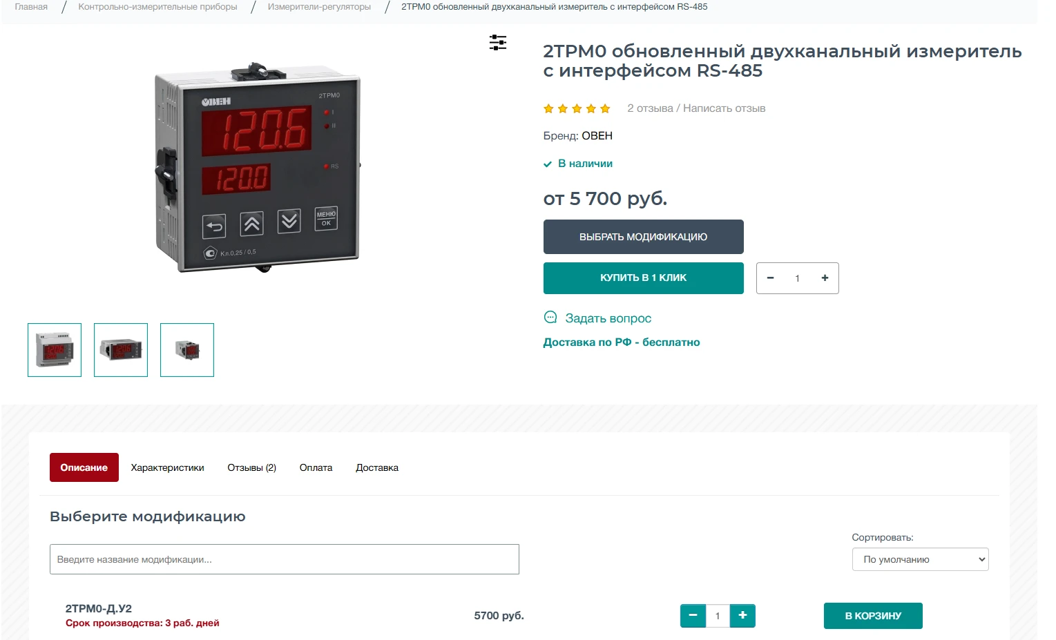 Пример оформления карточки для нашего клиента — интернет-магазина «Овен-Пром»