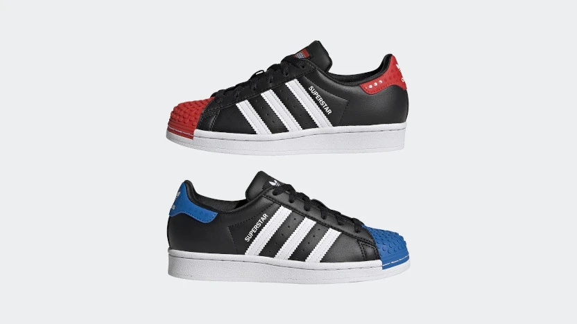 - А вот кроссовки Adidas, выпущенные в стиле LEGO в 2022 году — хороший пример коллаборации между известными брендами.