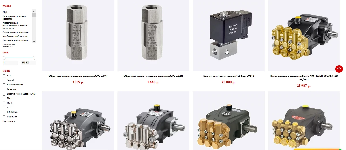Здесь с кластеризацией не очень: на одной странице есть и насос за 25 тысяч, и деталь за 1300