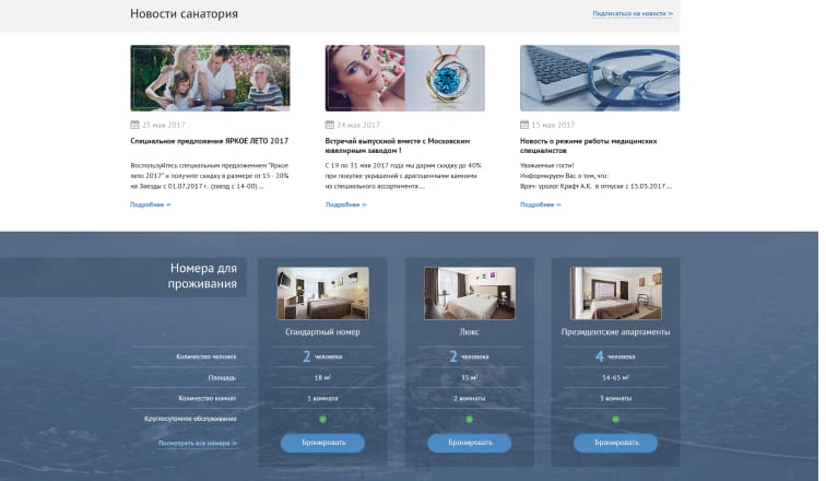 Не нужно перегружать сайт большими вложенностями страниц и непонятной навигацией. Посетитель сразу должен понимать, как посмотреть информацию о номерах и услугах.