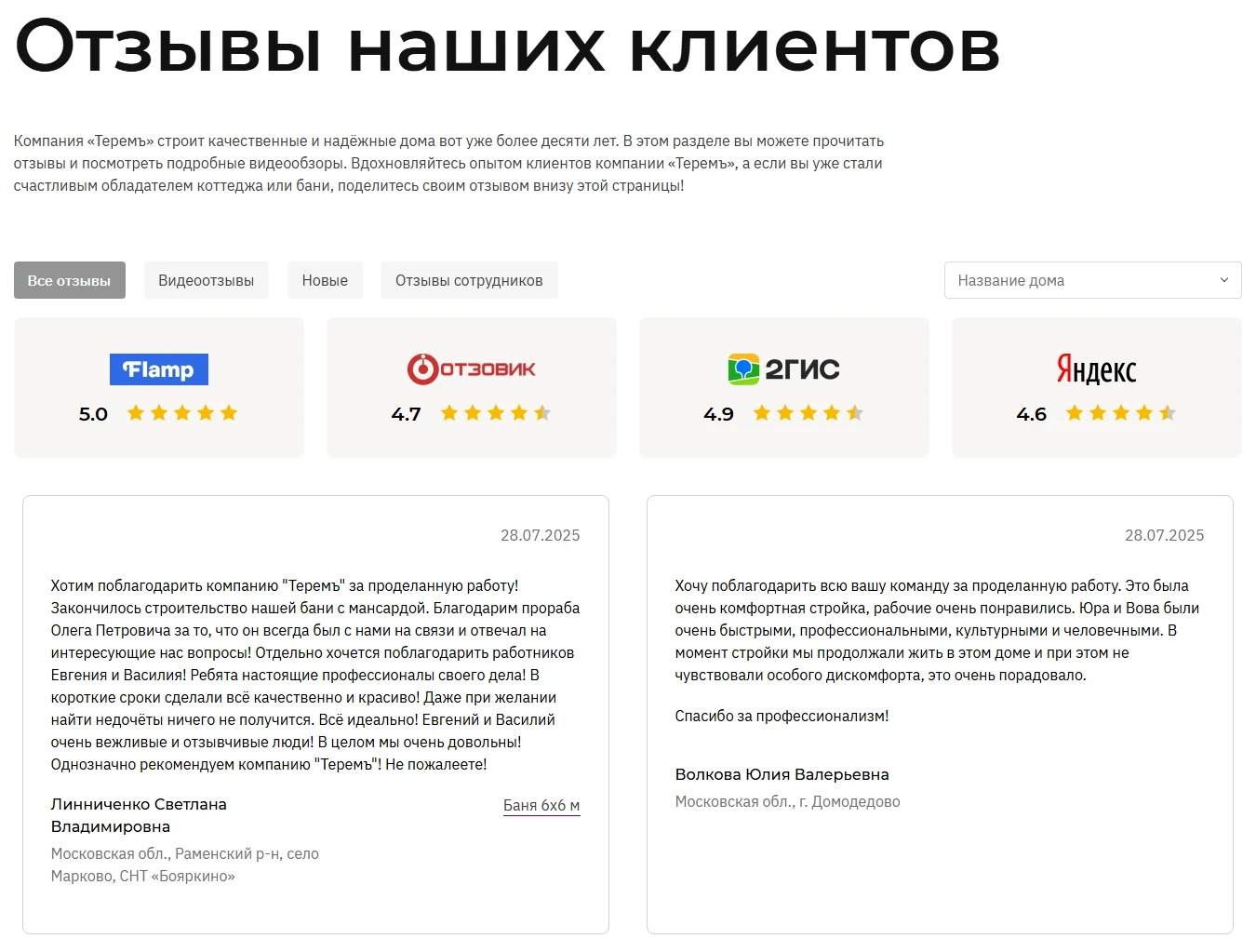 Сайты подрядчиков и частных мастеров