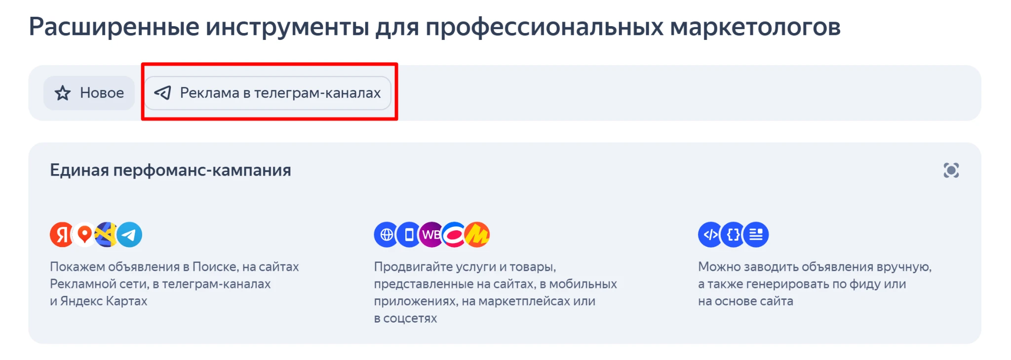 Яндекс реклама в Телеграм-каналах предлагает два подхода к размещению объявлений — с таргетингами по гео и тематикам каналов или показы на площадках, выбранных вручную.