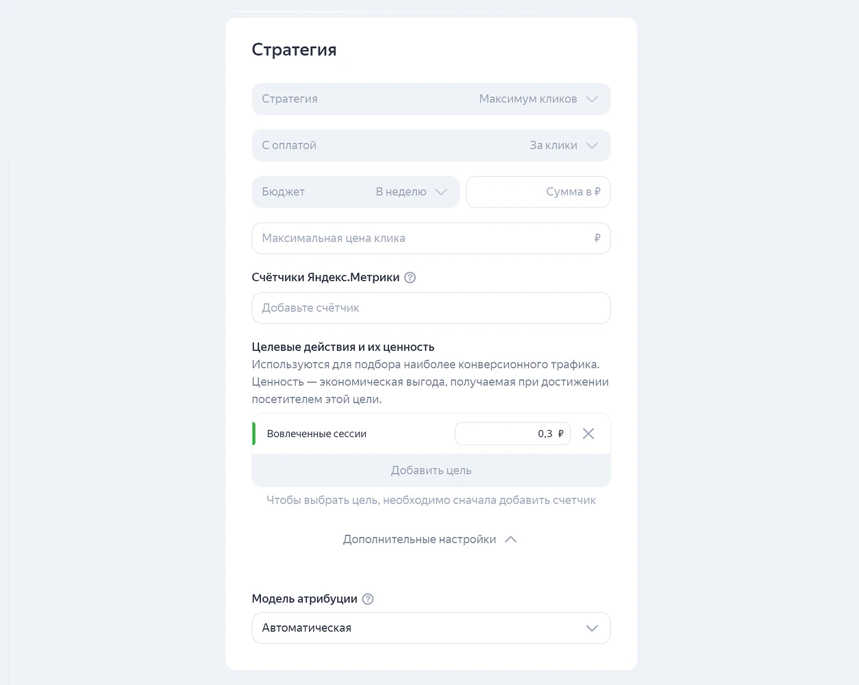 В этом случае Яндекс Директ автоматически оптимизирует показы под максимум кликов, распределяет бюджет по релевантным каналам и постепенно подбирает аудиторию, которая чаще реагирует на объявления.