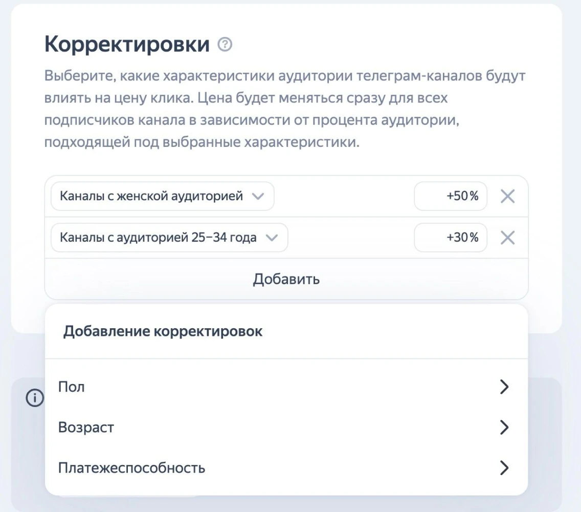 Корректировки помогают более точно настраивать показы рекламы. Повышающие коэффициенты применяют к тематикам, где аудитория реагирует лучше; понижающие — к тем, где клики оказываются дороже или вовлеченность ниже. Это помогает системе эффективнее обучаться и перераспределять бюджет в пользу тех площадок, которые дают стабильный отклик.