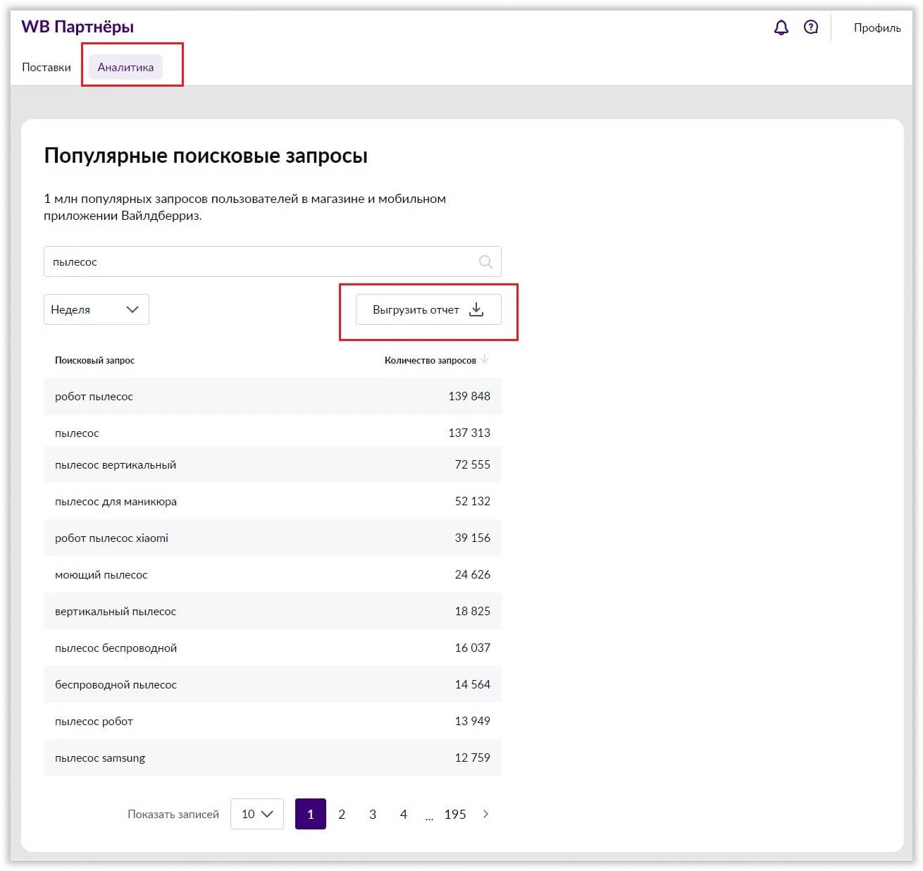Результат поиска в инструменте от Wildberries можно выгрузить как таблицу. Изображение предоставлено Demis Group
