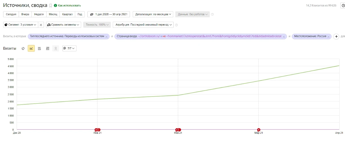Следующим по эффективности KPI для SEO будет рост трафика из поисковых систем. Но и у него есть свои недостатки. Вот мы получили заветные 100 500 переходов в месяц. Хорошо ли это? С одной стороны, конечно! Но что если при этом через ваш интернет-магазин совсем не поступает заказов?