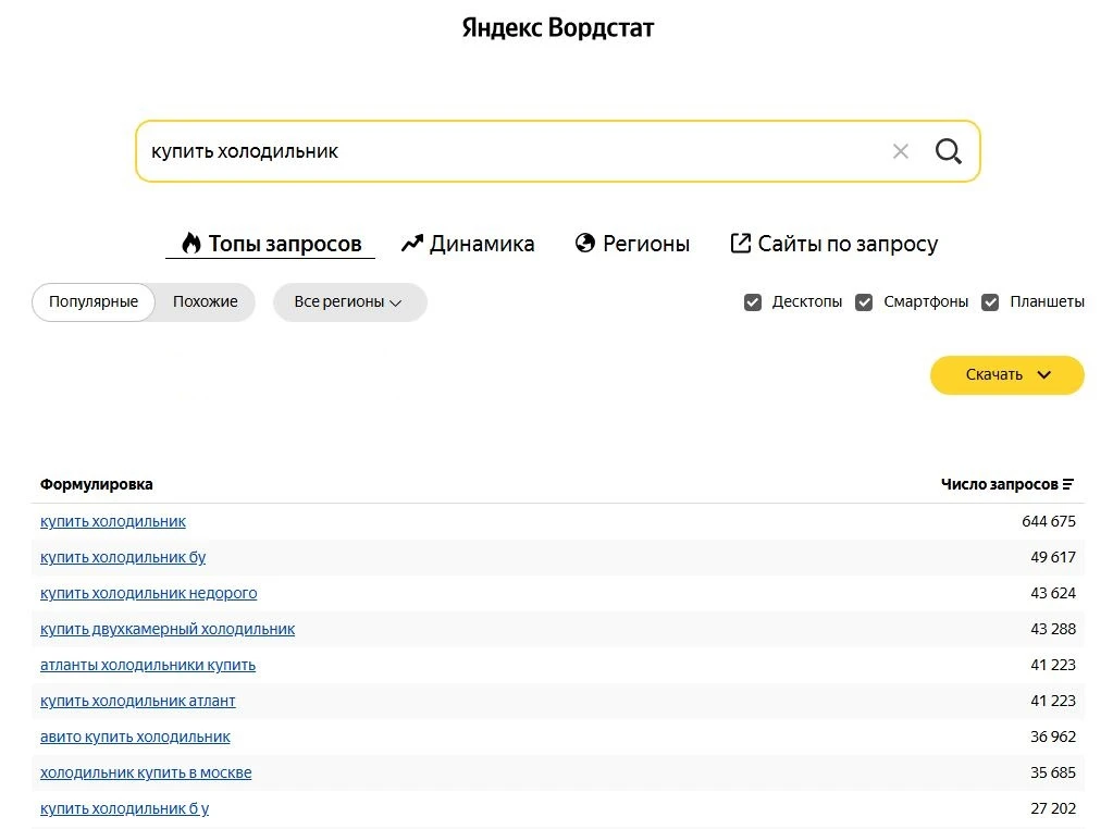 Например, для интернет-магазина бытовой техники нужны запросы «купить холодильник» (основная категория) и «купить холодильник Samsung» (подкатегория или отдельная страница).