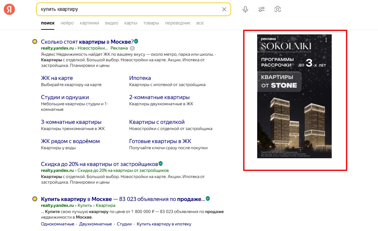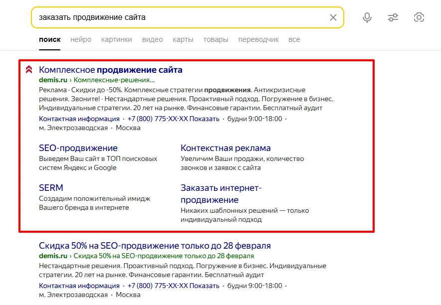Это один из самых эффективных способов продвижения, позволяющий показывать объявления пользователям, которые уже заинтересовались продуктом или услугой. Такие объявления показываются на поиске или на сайтах-партнерах рекламной сети Яндекса (РСЯ).