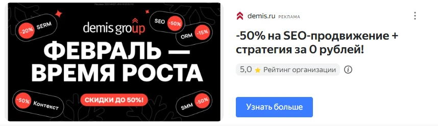 Все это учитывают специалисты по рекламе Demis Group, чтобы оптимизировать кампанию и повышать ее эффективность.