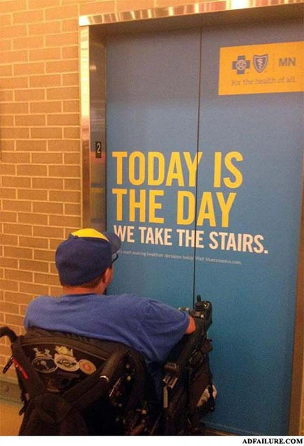 Идея, безусловно, хорошая. Экологическая акция, направленная на экономию электроэнергии, – это достойная инициатива. Но нельзя забывать о том, что у людей разные физические возможности. Кто-то смело допрыгает до 12 этажа, а кому-то это просто не под силу. Таким образом, безобидная на первый взгляд акция превращается в откровенное издевательство над инвалидами.