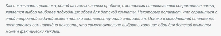 Пример «водного» текста. Суть этого текста можно было раскрыть в одном предложении: «В этой статье мы дадим рекомендации, как подобрать обои для детской комнаты».