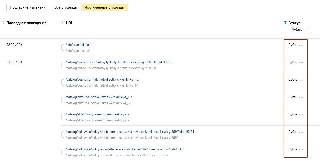 Дубли могут быть полными (если по разным адресам наполнение страниц совершенно идентично) и частичными (если страницы чем-то отличаются, но все же очень похожи: метатегами (о них расскажем ниже), основным текстом, заголовками). И того, и другого следует избегать. Для поисковиков дубли – это плохо, они выпадают из индекса, поэтому от них надо избавляться. Частая проблема – технические дубли, которые генерирует сам движок сайта (например, страницы с / и без слеша в конце URL).