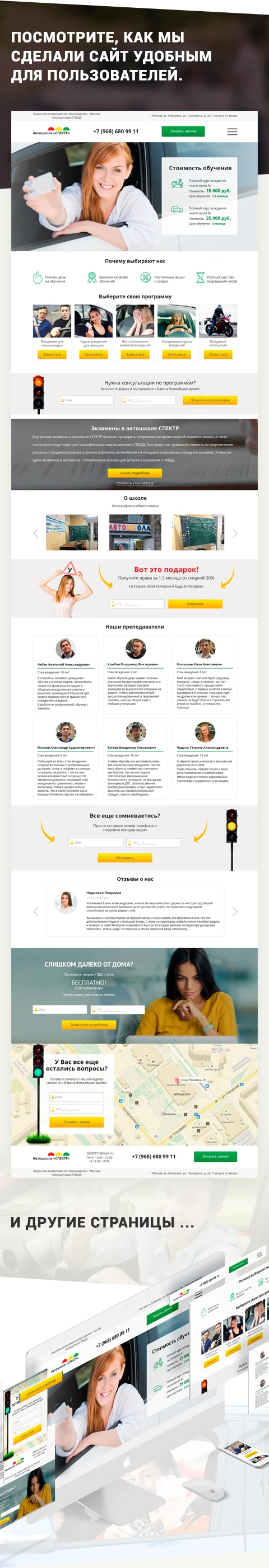 Для автошколы «Спектр» необходимо было разработать Landing page для проведения маркетинговых активностей с целью привлечения новых клиентов.