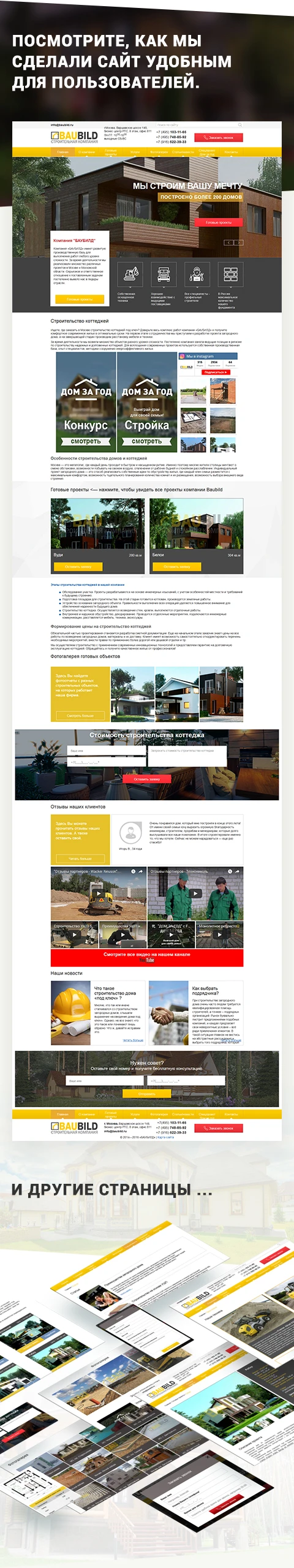 Для строительной компании «Baubild» нужно разработать конверсионный сайт, который позволит ознакомиться со всем спектром работ, а также быстро оформить заказ на сайте или оставить заявку менеджеру для общения.